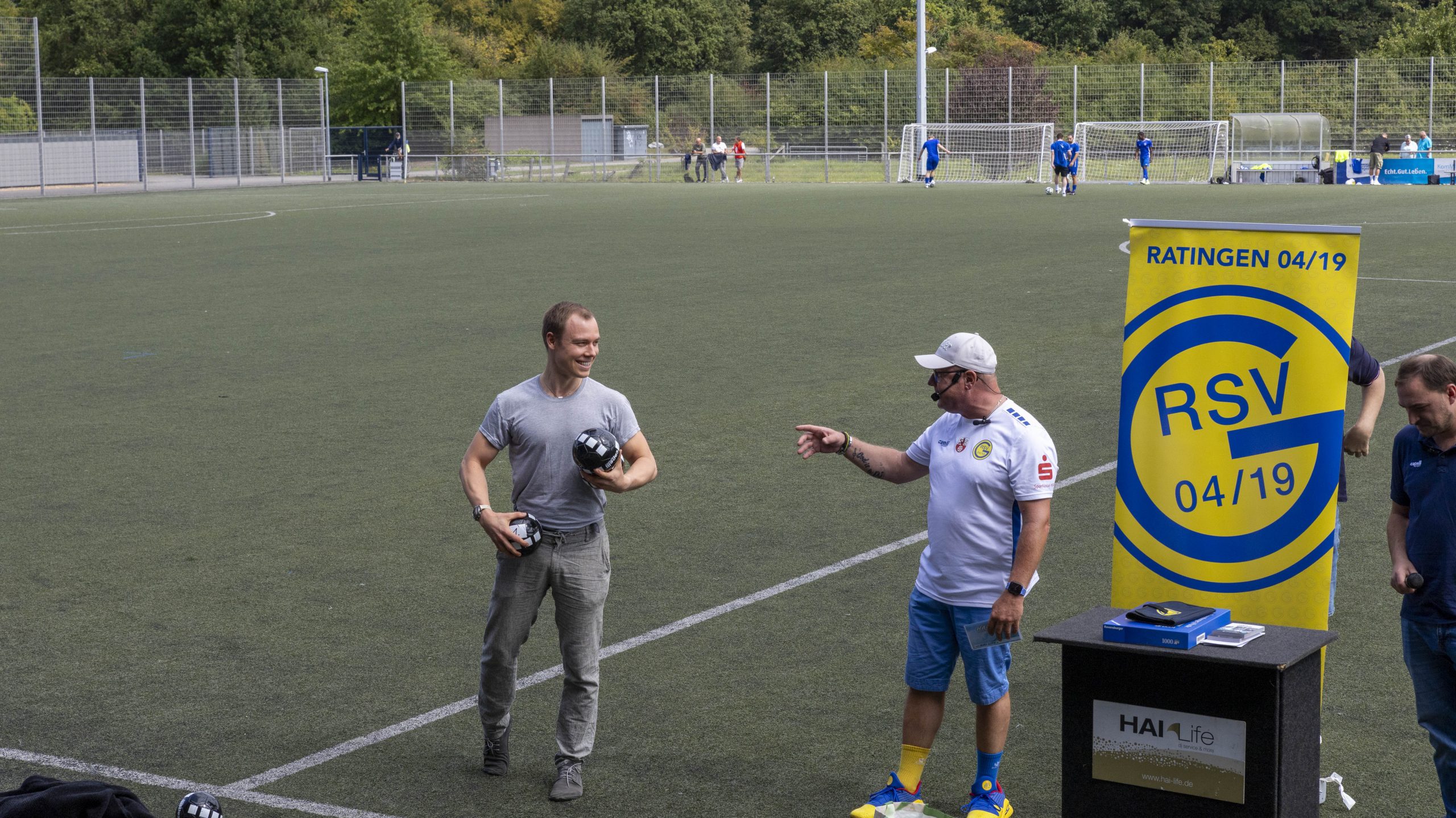 Nicht nur auf dem Rasen, auch abseits des Spiels wurde den Zuschauern einiges geboten. Eventmanager Mirco Köstring (HaiLife) sorgte in den Pausen für Unterhaltung: Kleine Bälle mit Gewinnnummern wurden ins Publikum geschossen, die glücklichen Fänger konnten Preise gewinnen. Außerdem gab es ein Geschwindigkeitsschießen aufs Tor, bei dem die Teilnehmer ihr Schusstempo messen lassen konnten – auch hier warteten Preise auf die Schnellsten.